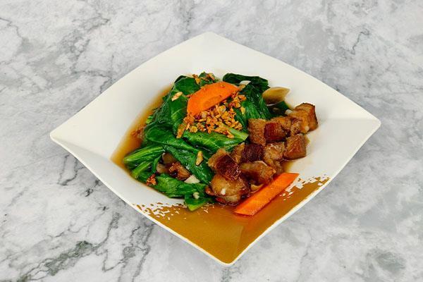 Stir Fry Kailan with Roasted Pork 猪肉炒空心菜