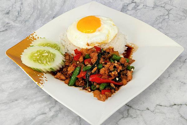 Basil Chicken Rice with Fried Egg 罗勒鸡肉末炒饭和蛋
