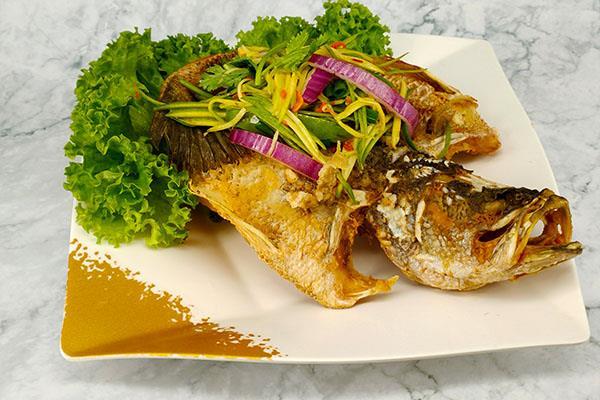 Deep Fried Seabass with Mango Salad 油炸鲈鱼和芒果沙拉