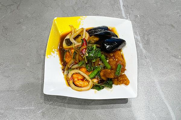 Stir Fried Seafood with Basil Leaves 干煸海鲜配罗勒叶