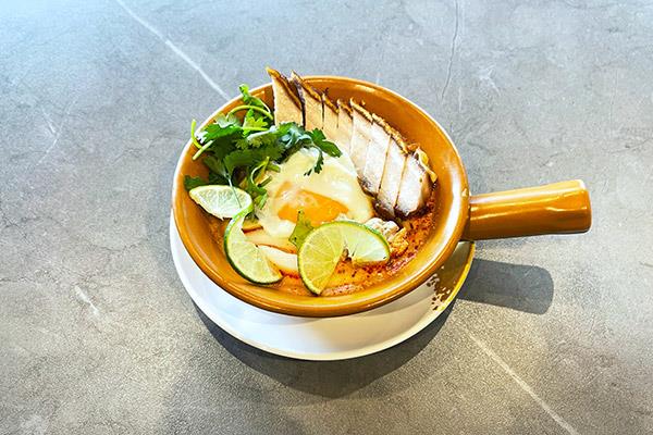 Claypot Tomyum Mama with Roasted Pork and Meatballs砂锅冬阴酸汤配烤肉和肉丸