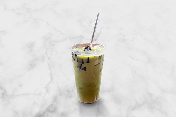 Green Milk Tea Grass Jelly 绿奶茶凉粉