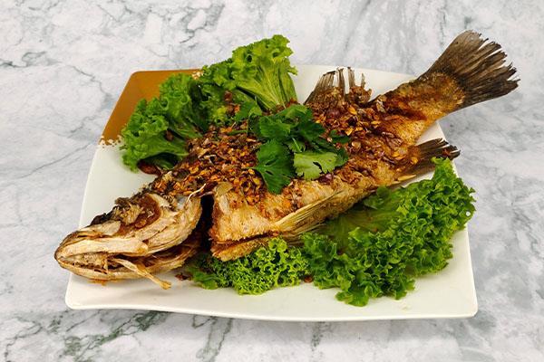 Deep Fried Seabass with Baby Garlic 油炸鲈鱼和幼蒜